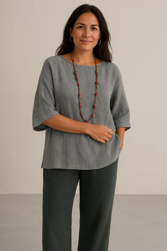 Luxe Linen Blouse for Women with 3/4 Sleeves